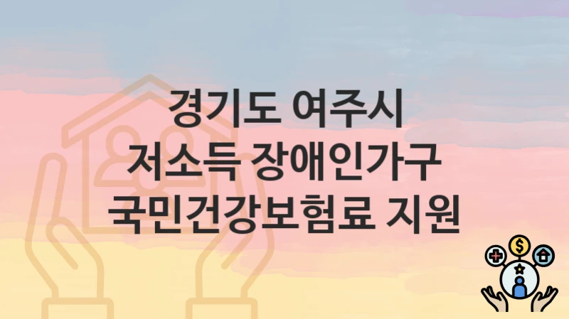 이번에 소개할 정책은 경기도 여주시 복지행정과에서 제공하는 저소득 장애인가구 국민건강보험료 지원 지원 제도입니다.