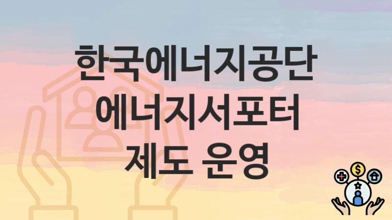 “에너지서포터 제도 운영” 신청 조건 및 접수 방법 – 한국에너지공단 복지 정책 안내
